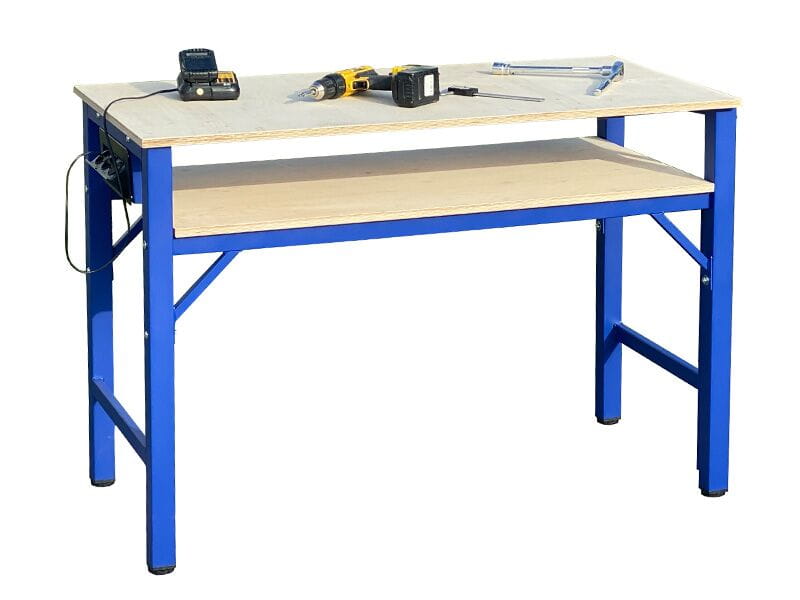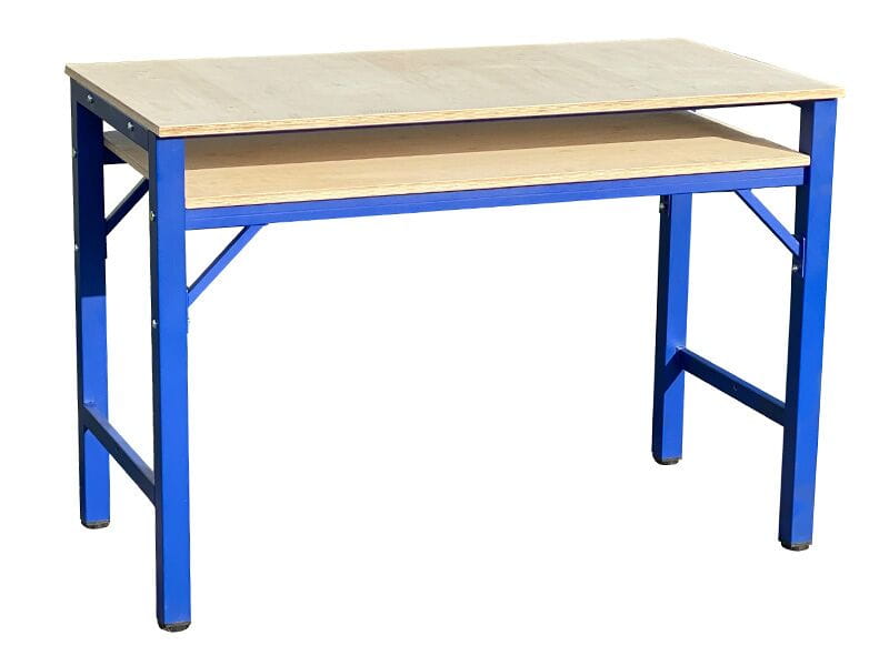 - Stół warsztatowy o wymiarze blatu 1300x800 mm, wysokość 910 mm. Wykonany z profilu kwadratowego 50x50 mm (nogi) oraz 40x20 mm i 20x20 mm ( pozostałe elementy).