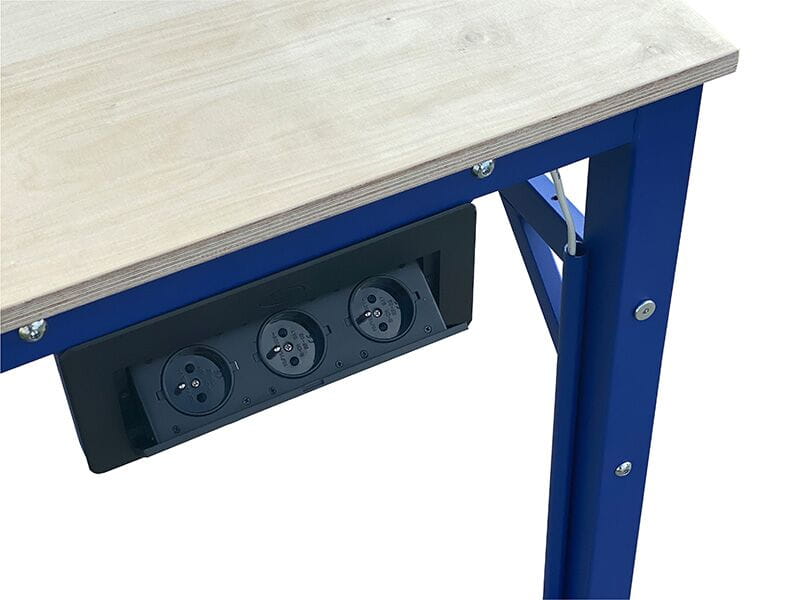 - Wysuwane gniazdo elektryczne (1x3) - montowane z boku stołu. UWAGA! Stół posiada osłonę przy nodze do przeprowadzenia przewodu elektrycznego - zestaw nie zawiera przewodu do podłączenia gniazda. Do jego podłączenia konieczna jest osoba z uprawnieniami.