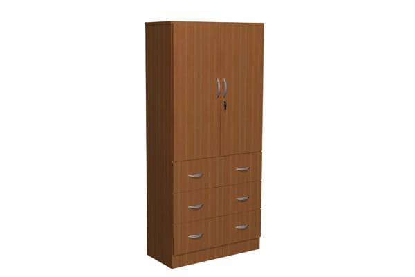 - Posiada 3 przestrzenie na dokumenty zamykane szafką i 3 szuflady.