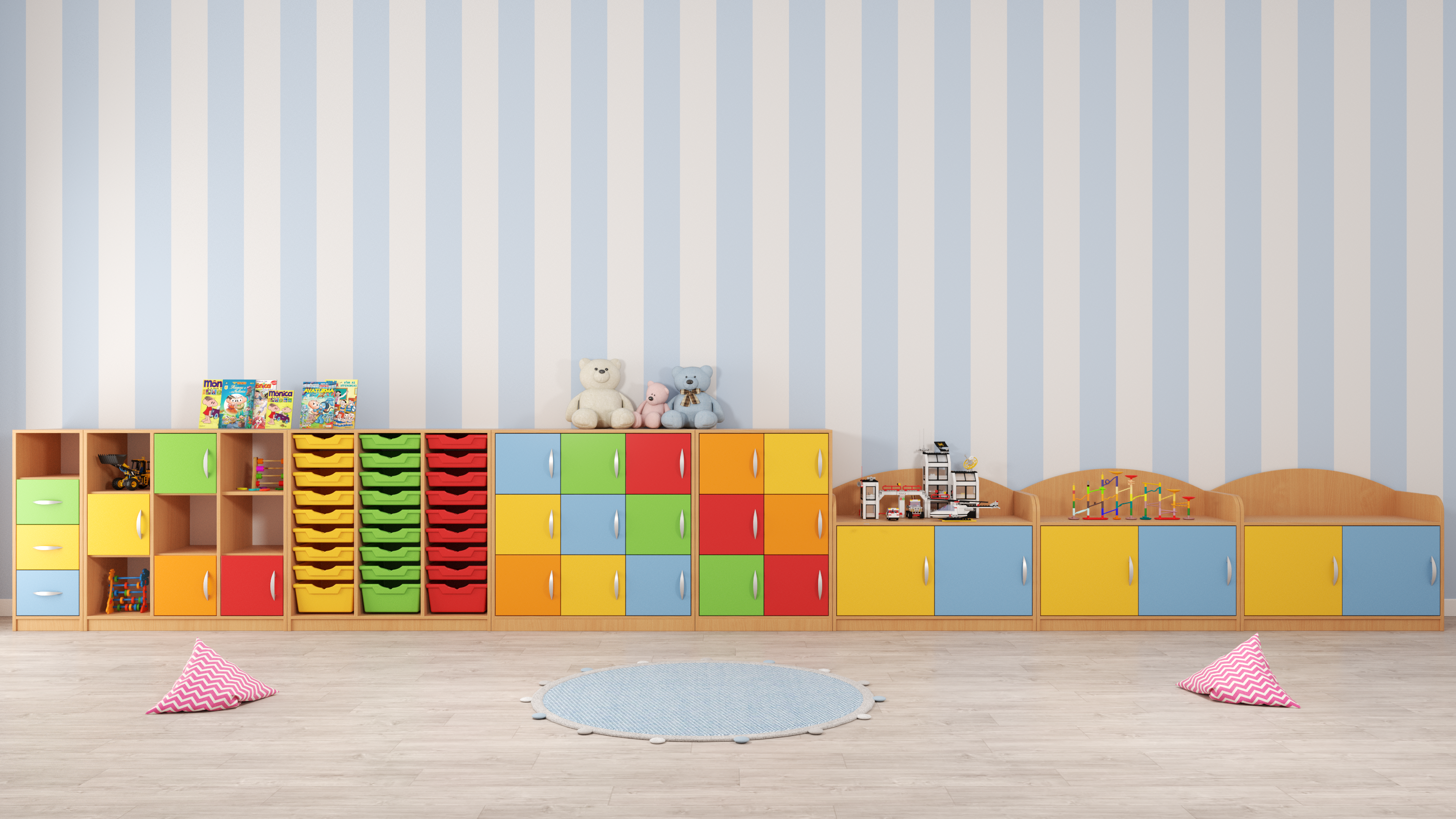 - Zestaw mebli przedszkolnych nr 10 o długości ok 7,4 m i składający się z następujących mebli: